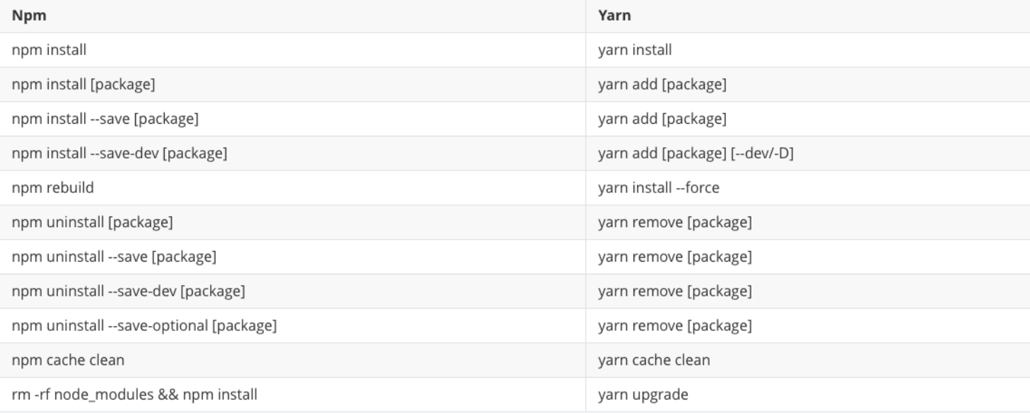 npm和yarn命令对比